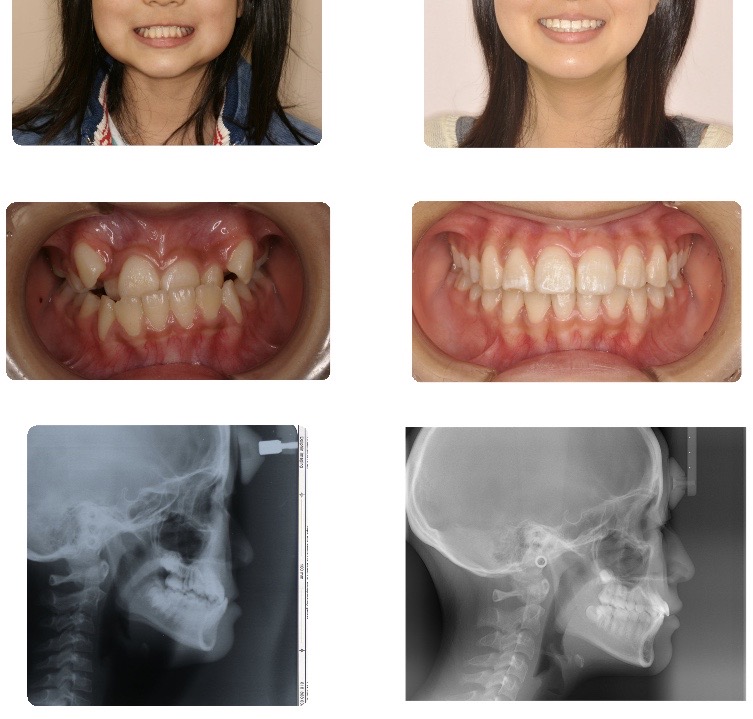 下顎は後退し、下顎前歯が大きく唇側に傾斜し凸凹な歯列でした。